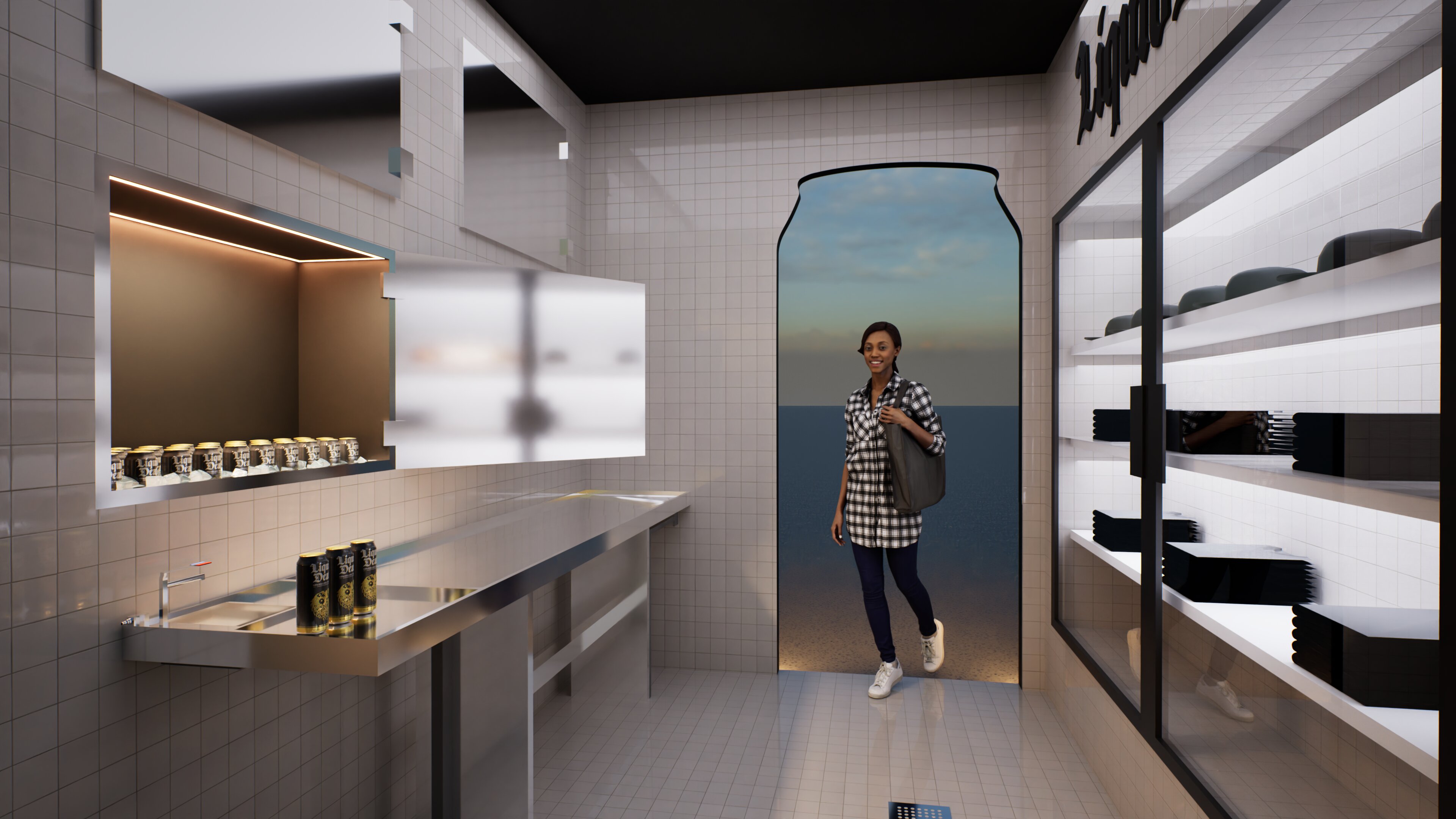 Designed as a series of modular cubes, each unit blended stark, clinical interiors with edgy street-art exteriors, creating a surreal juxtaposition that drew in guests with curiosity. From the moment attendees approached, the glowing outlines and oversized Liquid Death cans signaled a bold, unconventional experience.