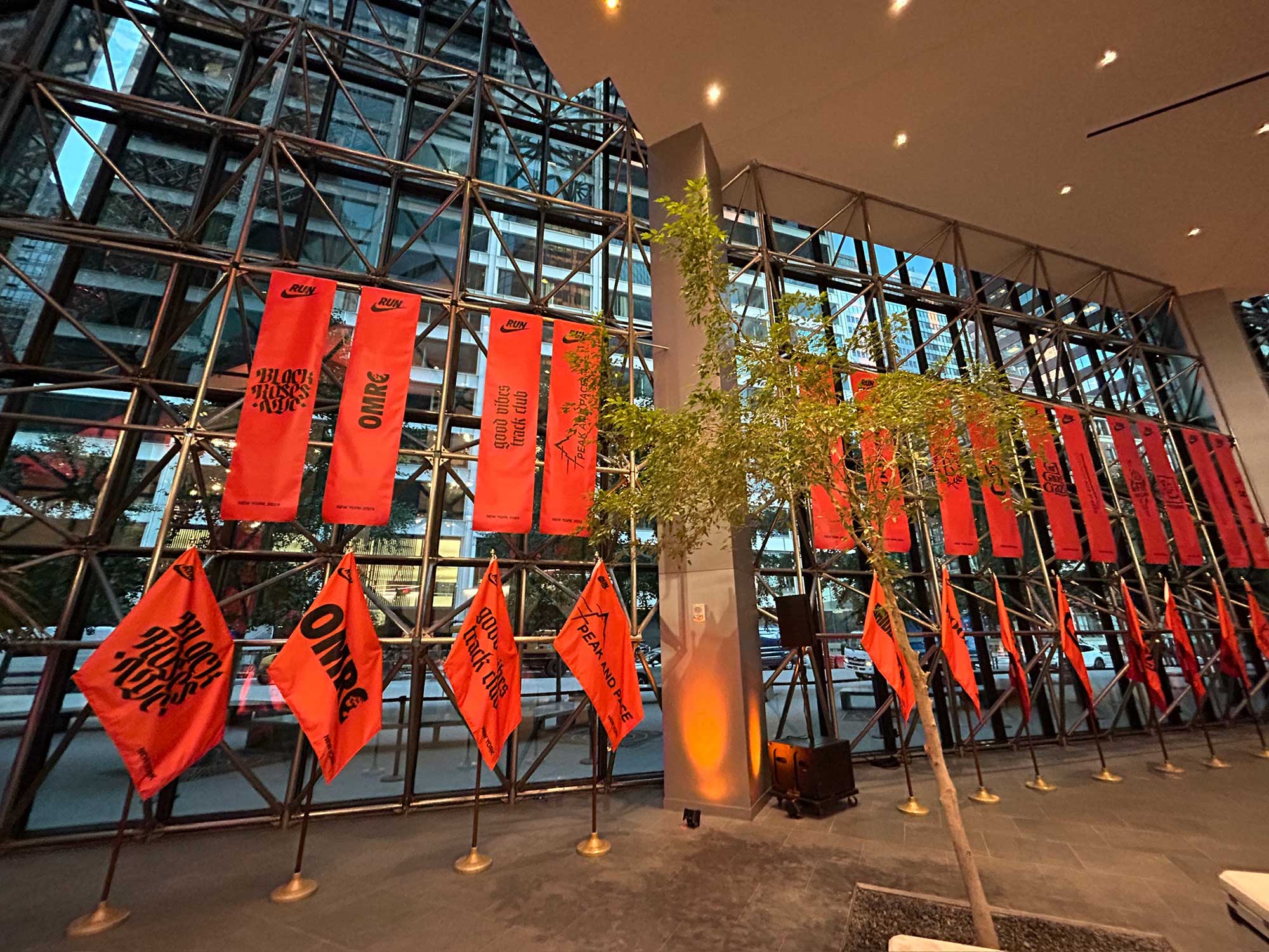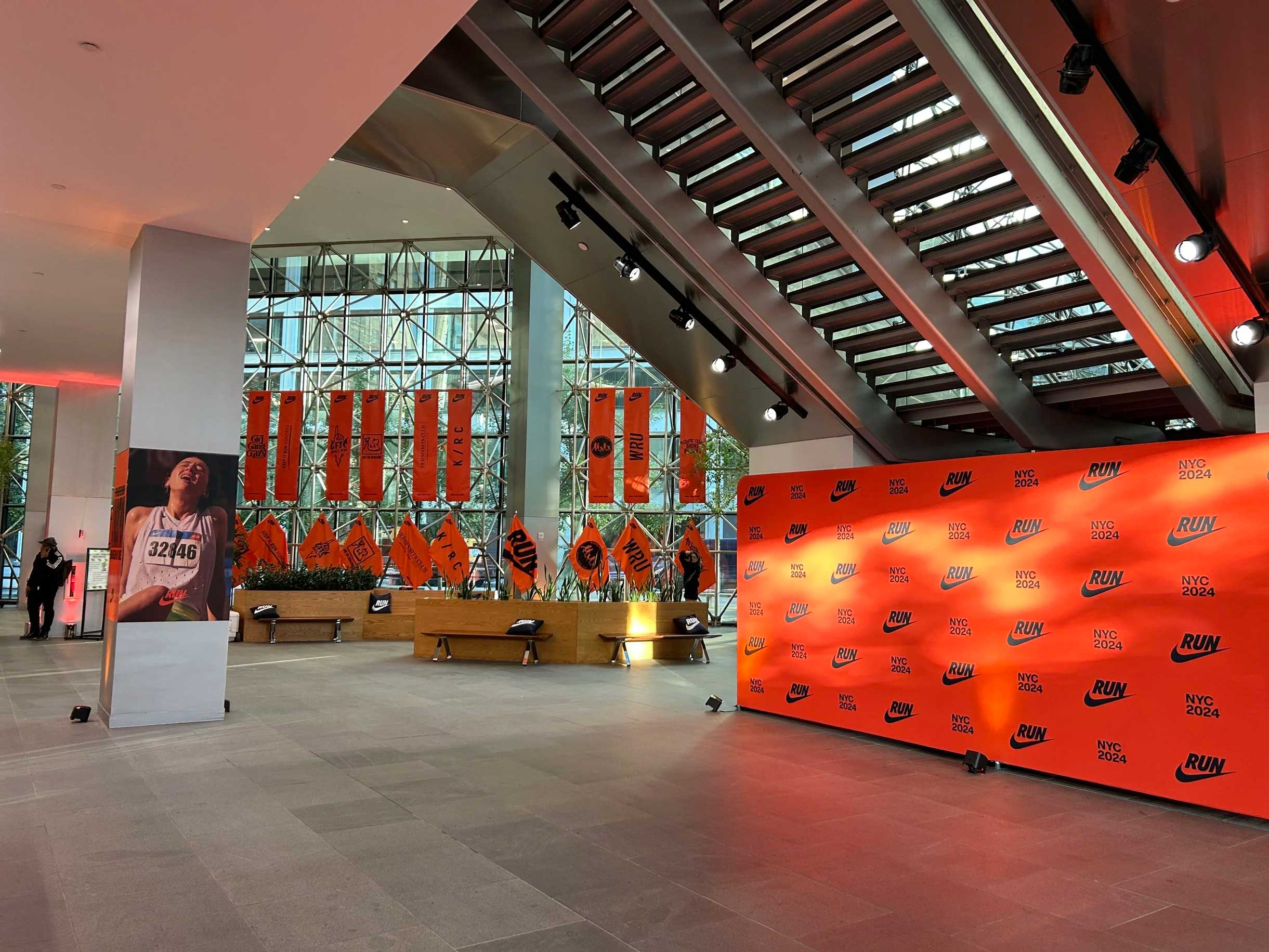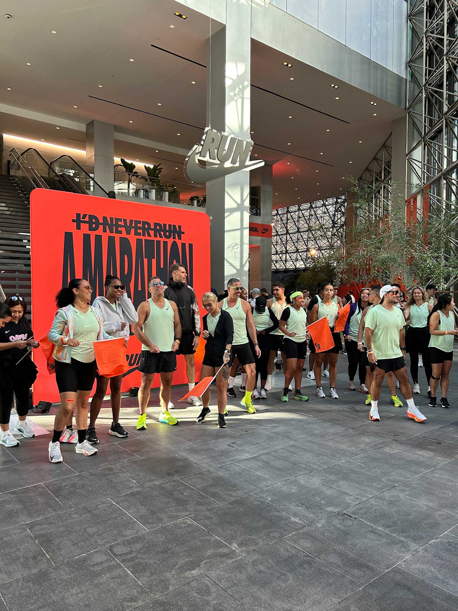 Guests were welcomed with a series of interactive touchpoints that showcased their pride and personal goals. Custom backdrops and club-branded signage made for memorable photo moments, while a dedicated Goal Wall invited runners to jot down what they hoped to achieve—whether during the shakeout or in the marathon itself. Before heading out on the 3.1-mile warm-up, DJ Suaso set the tone with high-energy music, and Nike Coaches and Athletes offered inspiring words. Post-run, the crowd regrouped over snacks and refreshments, collecting exclusive tees and totes that marked the occasion.