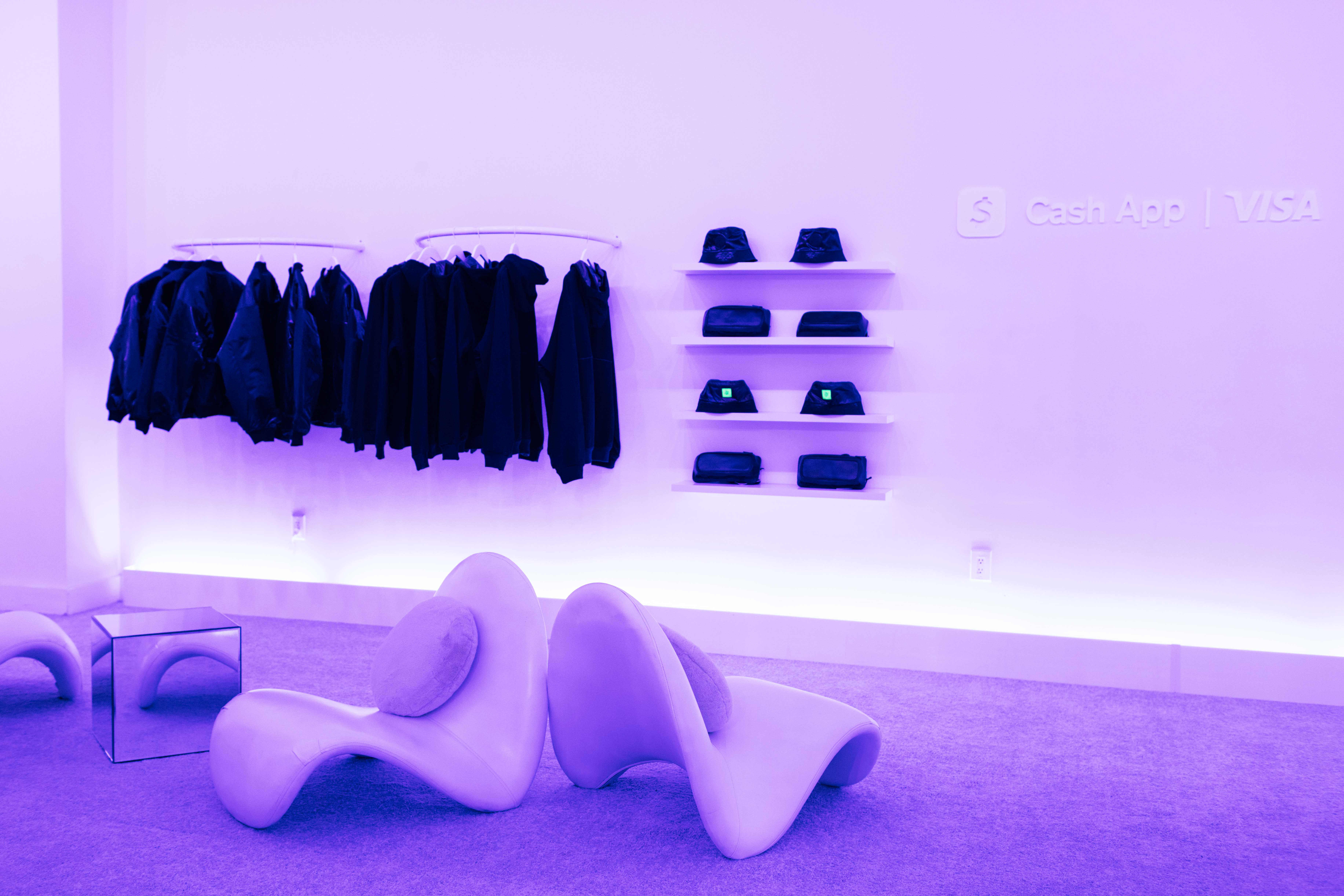 Cash by Cash App showcased apparel and accessories made with innovative heat-sensitive materials. With the simple press of a button, guests activated bursts of controlled heat that revealed shifting patterns and colors across the pieces—transforming every item into a personalized moment of interaction.