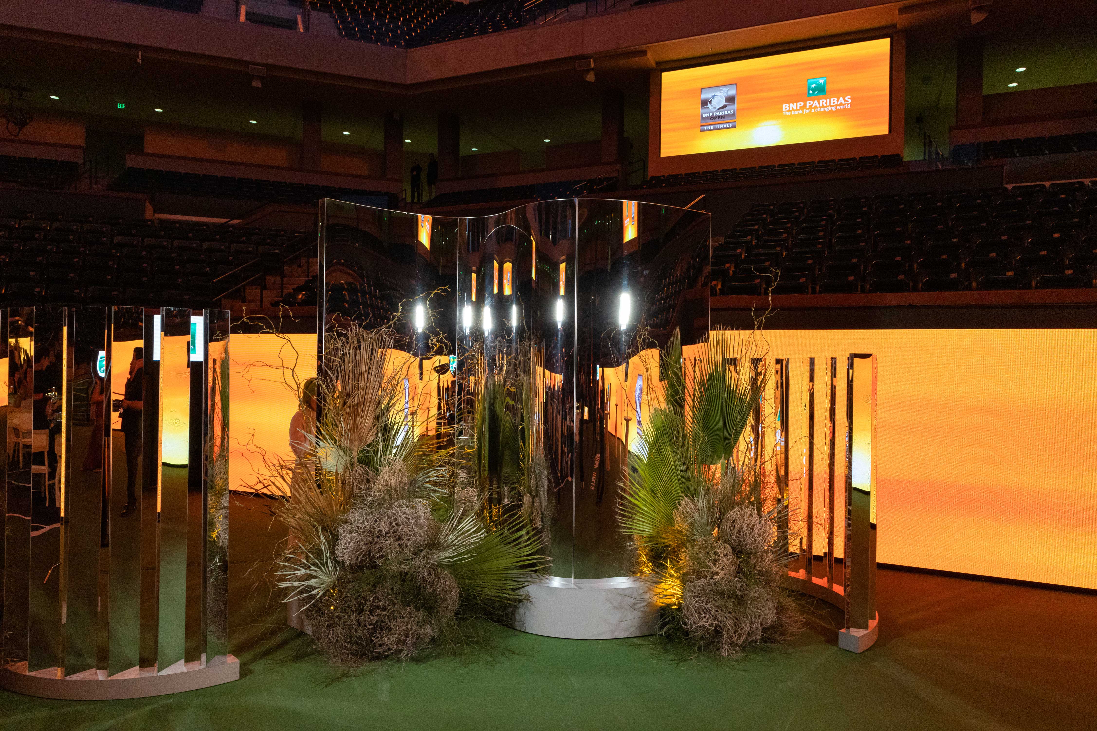 BNP notes will be woven throughout, from a hero entrance photo moment to logo-embossed menus and more. A marquee single long table will run across Center Court, housing the evening’s conversation and connection. Sustainability will be the focus of production from food sourcing to print material to custom builds.